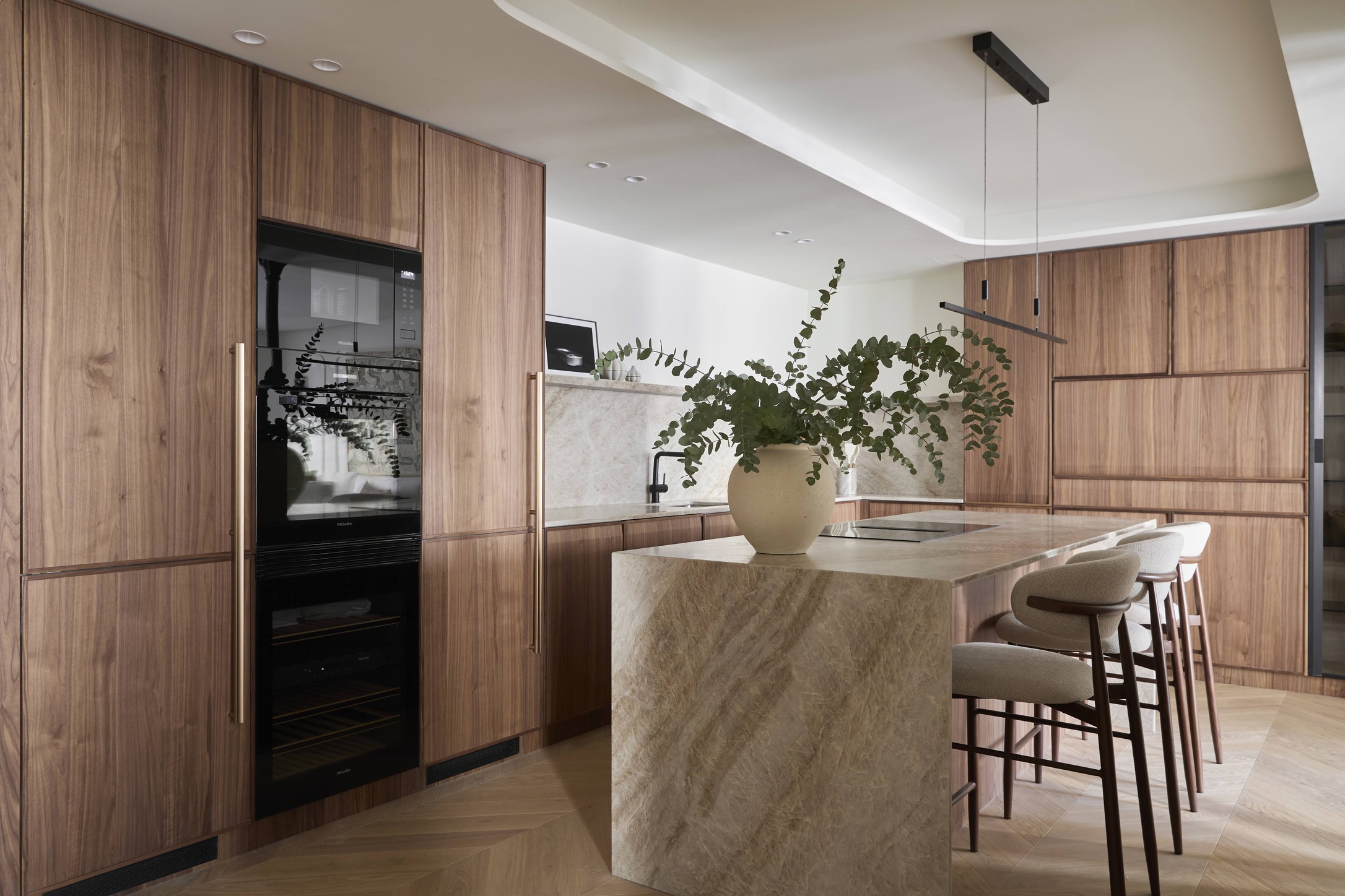 La iluminación desempeña un papel esencial en las cocinas de madera, ya que resalta las texturas y aporta profundidad al diseño. La combinación de luz natural con iluminación LED integrada permite crear un ambiente cálido y equilibrado. Además, al elegir cuidadosamente los colores de paredes y encimeras, se consigue una armonía visual que realza la presencia de la madera.