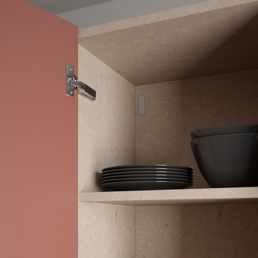 Le système Link est un mécanisme situé sur les côtés de l'armoire, conçu pour les portes battantes. Il garantit une ouverture et une fermeture douces, fluides et parfaitement contrôlées.