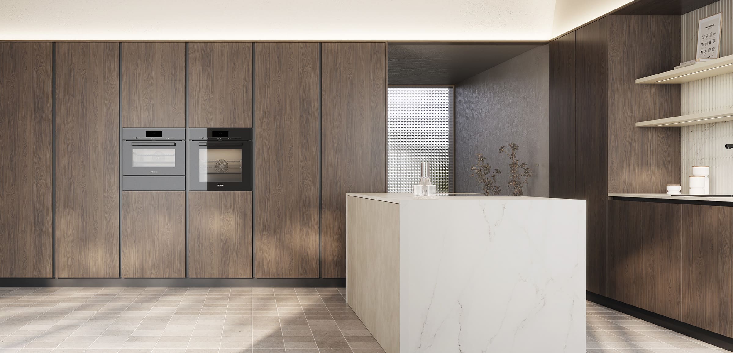 Es un espacio que no solo cumple con las exigencias prácticas de una cocina moderna, sino que también ofrece una experiencia sensorial que inspira bienestar.