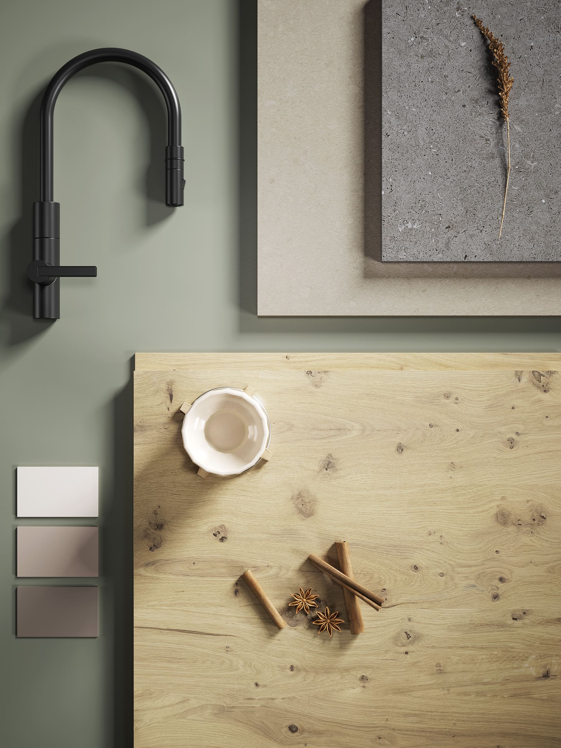 La composición, robusta y perfectamente ordenada, ofrece una cocina con carácter propio. Se percibe moderna y a la vez cercana, pensada para acompañar el ritmo cotidiano con funcionalidad y comodidad.
