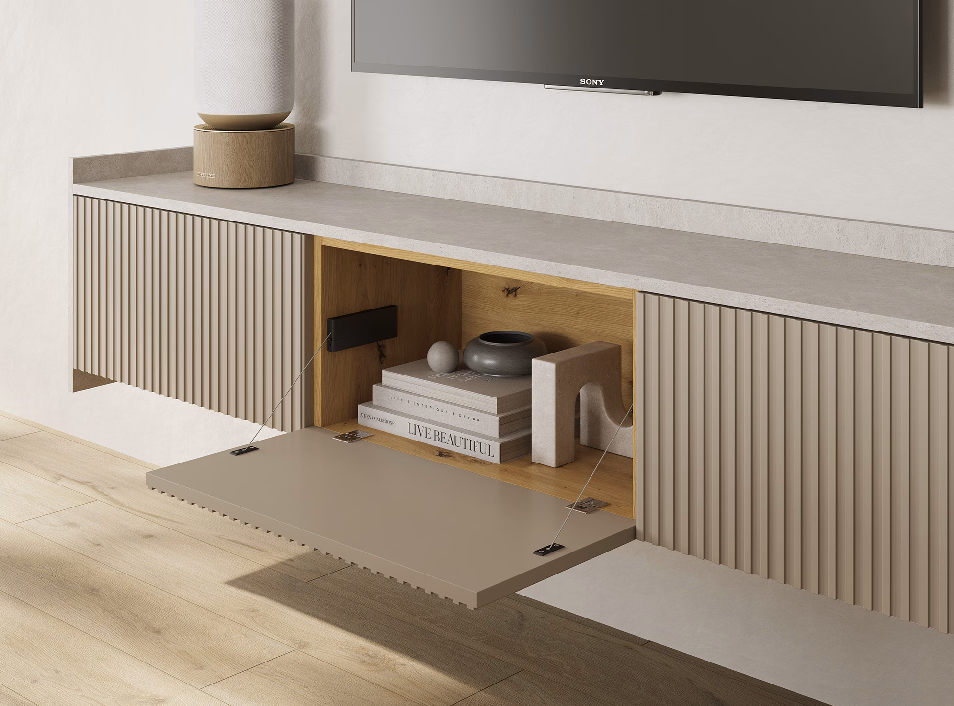 Las tonalidades suaves actúan como un hilo conductor que unifica el entorno, permitiendo que cada elemento respire sin sobrecargar la composición. El módulo anclado con sistema Link establece una transición sutil entre cocina y zona de día, integrando ambas áreas en un mismo lenguaje estético. El resultado es una continuidad espacial que refuerza la fluidez del diseño.