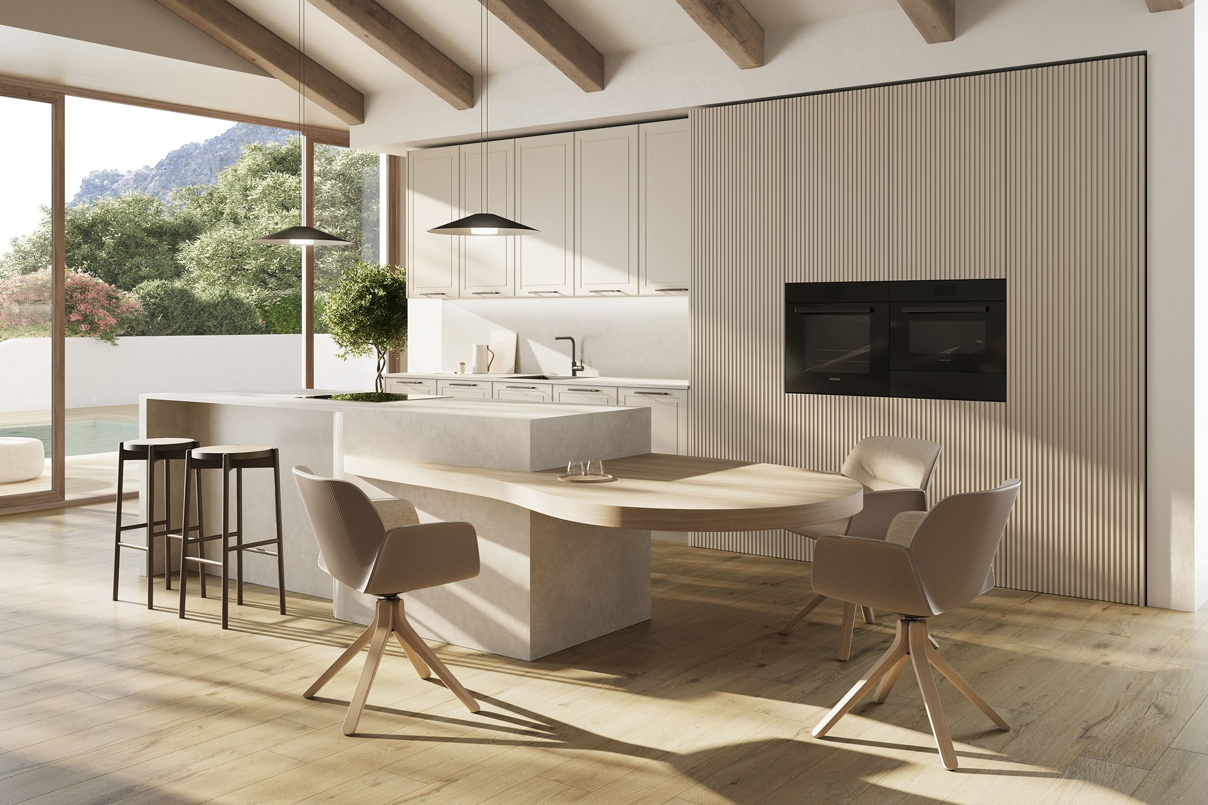 Es una cocina que se integra con naturalidad en el hogar, acompañando la vida diaria con una belleza atemporal.